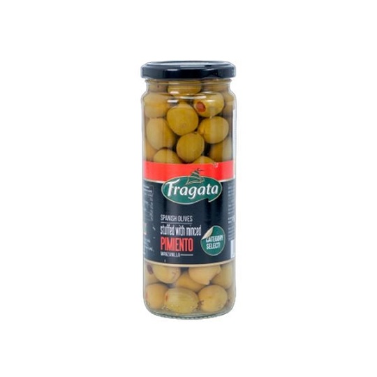 FRAGATA španielské olivy zelené plnené paprikovou pastou 335gSkladom 1 ks2,89 €/ ks2,43 € bez DPH
