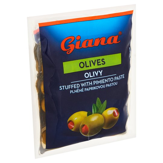 - GIANA olivy zelené plnené paprikovou pastou v slanom náleve 195 g