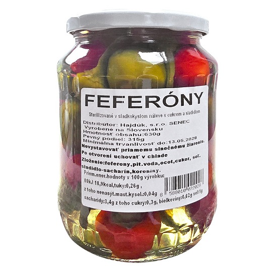 - HAJDUK feferóny sterilizované 630g