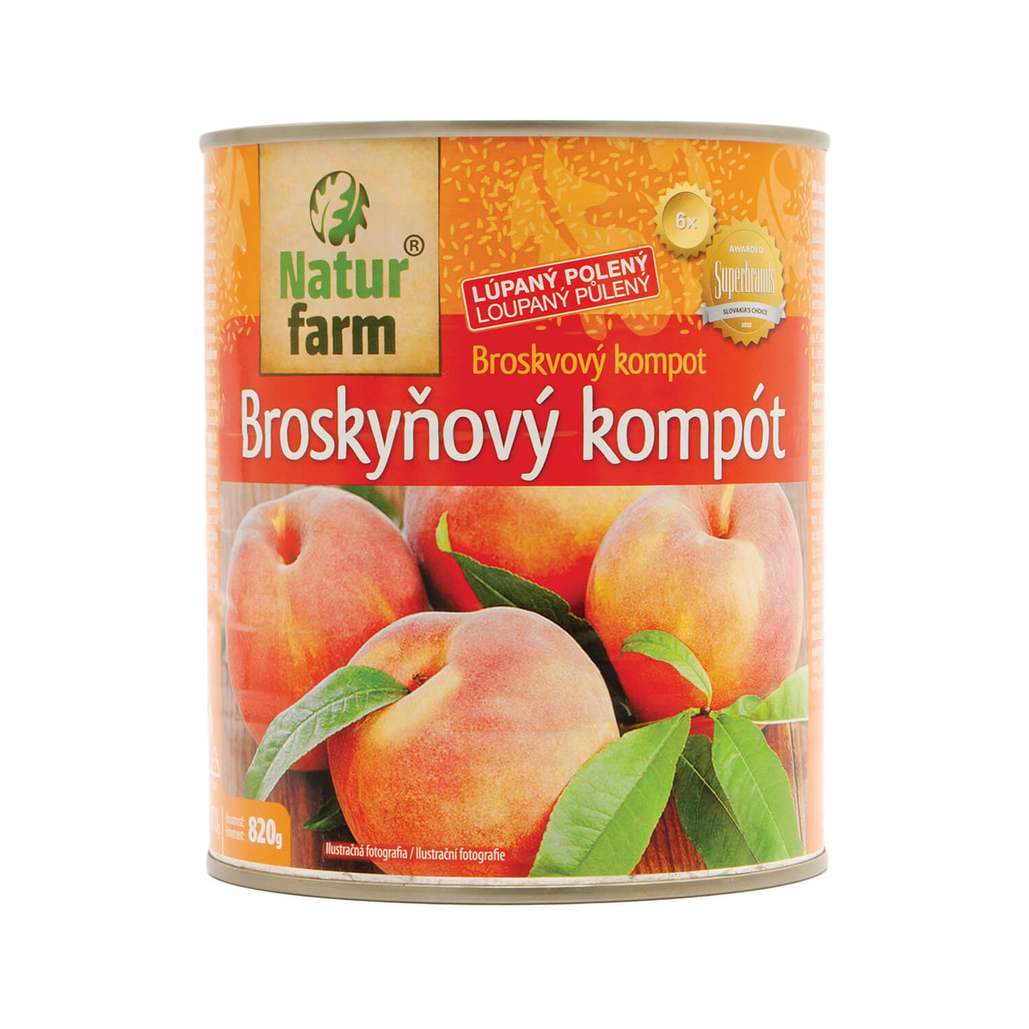 NaturFarm kompót broskyňový 820 gSkladom 7 ks2,69 €/ ks2,19 € bez DPH
