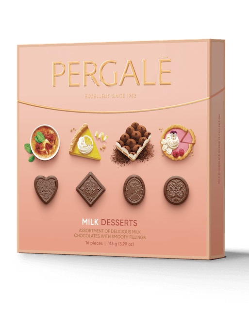 - PERGALE dezert zmes praliniek z mliečnej čokolády s príchuťami 113g