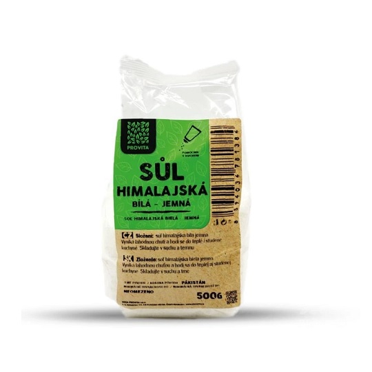 - PROVITA BIO himalájska soľ biela jemná mletá jedlá soľ 500g