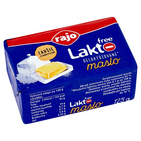 RAJO laktofree delaktozované maslo 125gSkladom 2 ks2,29 €/ ks2,18 € bez DPH