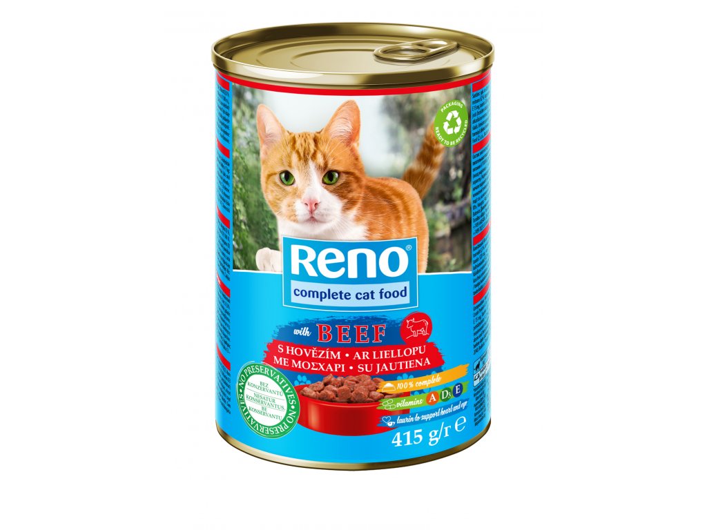 - RENO krmivo pre dospelé mačky, kúsky pre mačky s hovädzinou v omáčke 415g