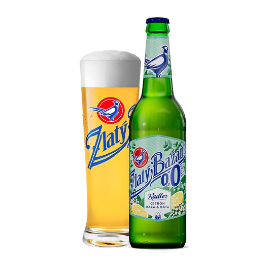 ZLATÝ BAŽANT 0,0% nealko pivo radler citrón baza mäta sklo FLV 0,5 l