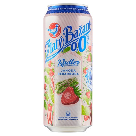 ZLATÝ BAŽANT 0,0% nealko pivo radler jahoda rebarbora plech "Z" 0,5 lSkladom > 25 ks0,99 €/ ks0,80 € bez DPH